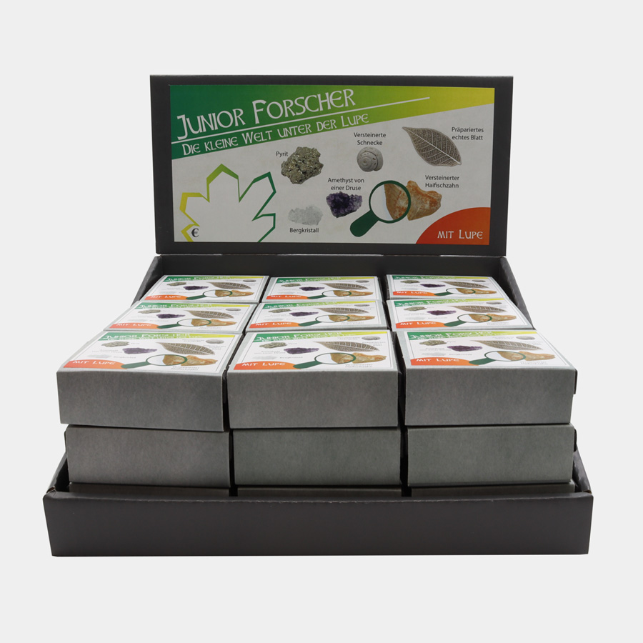 Das Display enthält 27 Stück Forscher, die Boxen können zu 10 Stück nachbestellt werden.