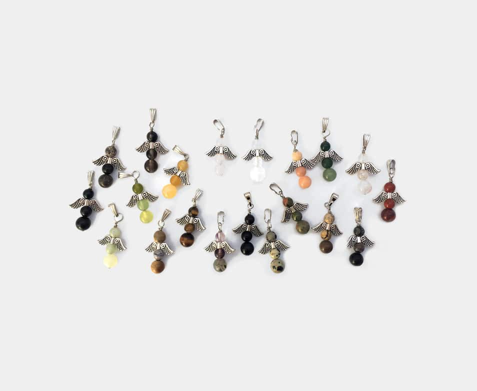 Das 100 Stück Set besteht aus einem bunten Mix von Glücksengel Anhänger mit Öse aus vielen Steinsorten.